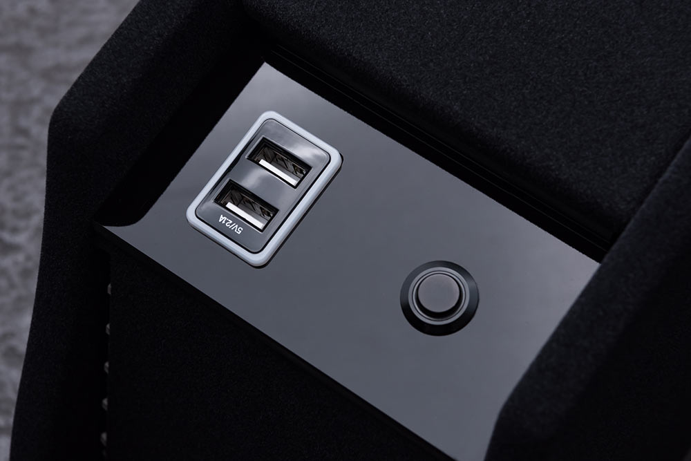 USBソケットは2つ口仕様。イルミで充電状態を確認可能。